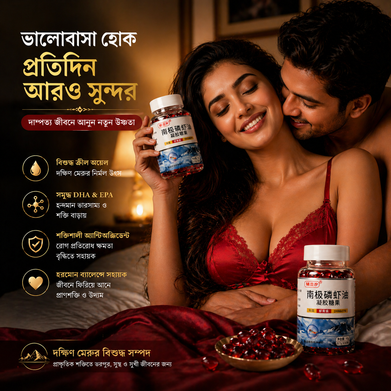 শুধু একটি সাপ্লিমেন্ট নয় — প্রিমিয়াম অ্যান্টার্কটিক উৎস থেকে তৈরি প্রতিটি সফটজেল আপনার দৈনন্দিন পুষ্টির স্মার্ট সমাধান। DHA, EPA এবং প্রাকৃতিক অ্যান্টিঅক্সিডেন্টের নিখুঁত মিশ্রণ।