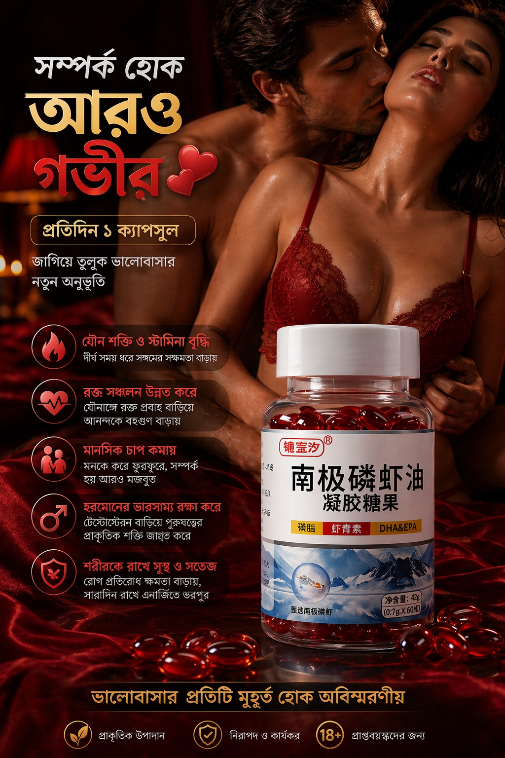 প্রতিদিনের ব্যস্ততা, ক্লান্তি, চাপ — সব কিছুর মাঝে নিজেকে ভুলে যাবেন না। মাত্র একটি সফটজেল ক্যাপসুল আপনাকে দিতে পারে এমন এক প্রিমিয়াম যত্ন, যা শুধু আপনাকে নয়, আপনার ভালোবাসার মানুষটিকেও দেবে নতুন উষ্ণতা। প্রতিদিন একটু বেশি জীবন্ত আপনি, প্রতিদিন একটু বেশি কাছের সম্পর্ক।